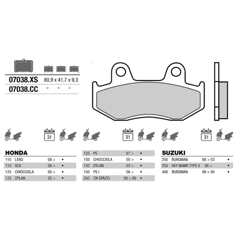 Brembo 07038 колодки тормозные МОТО(FDB2086 и FDB2119)