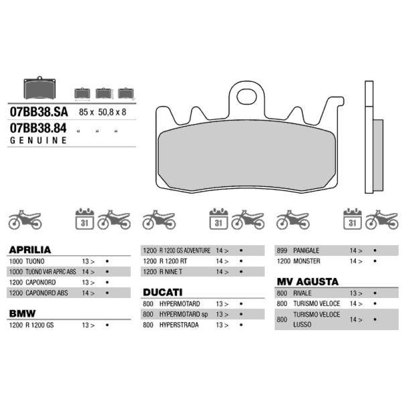 Brembo 07BB3884 колодки тормозные МОТО(FDB2265)