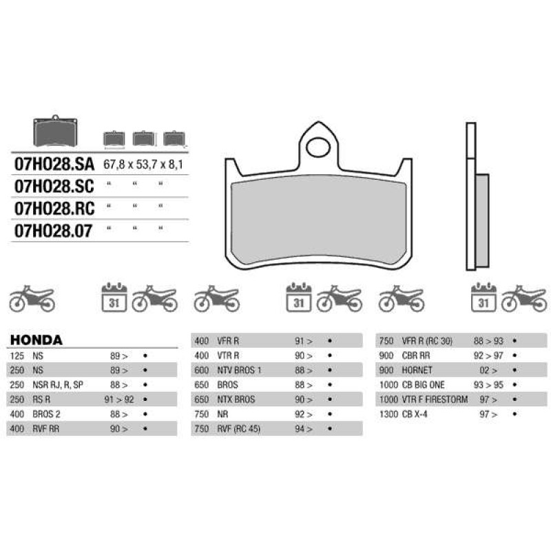 Brembo 07HO28SA колодки тормозные МОТО(FDB533)