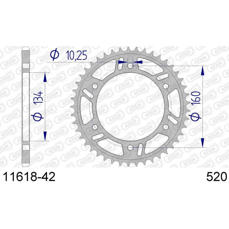 11618-42 звезда задняя (ведомая) алюминиевая, 520, AFAM (JTA1308.42)