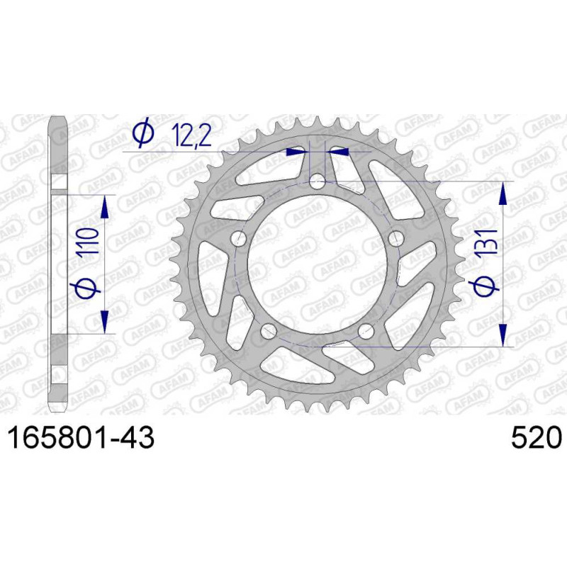 165801-43 звезда задняя (ведомая) алюминиевая, HARD, 520, AFAM (JTA75.43)