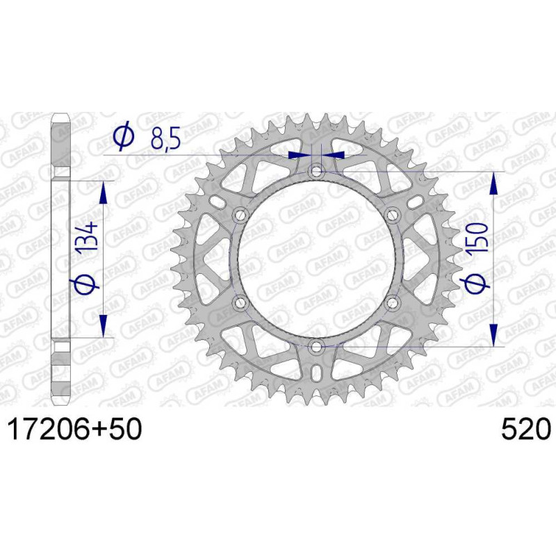 17206+50 звезда задняя (ведомая) алюминиевая, самоочищающаяся, 520, AFAM (JTA460.50)