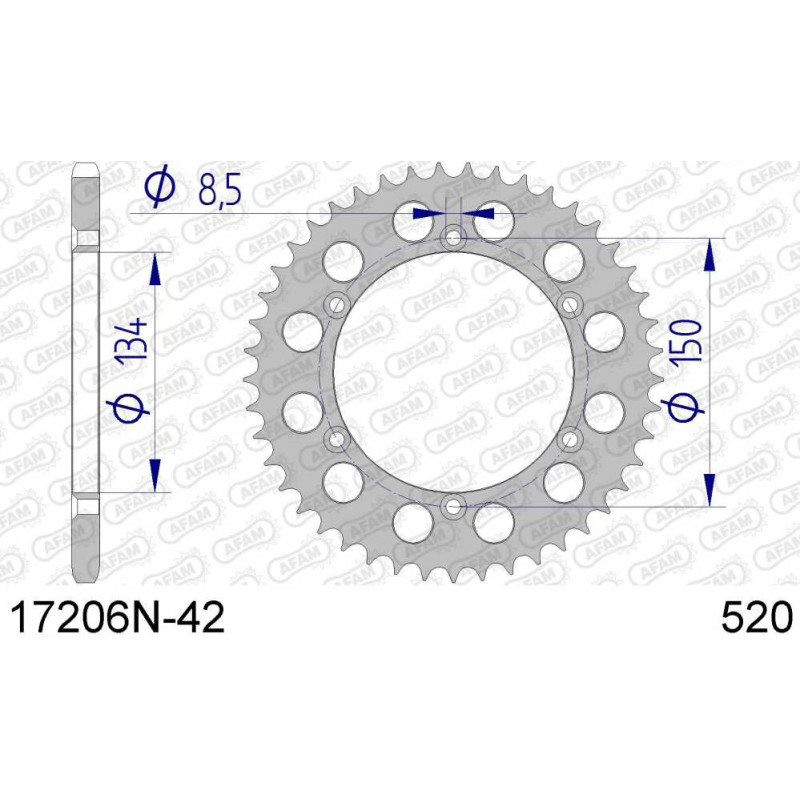 17206N-42 звезда задняя (ведомая) алюминиевая, анодированная, 520, AFAM