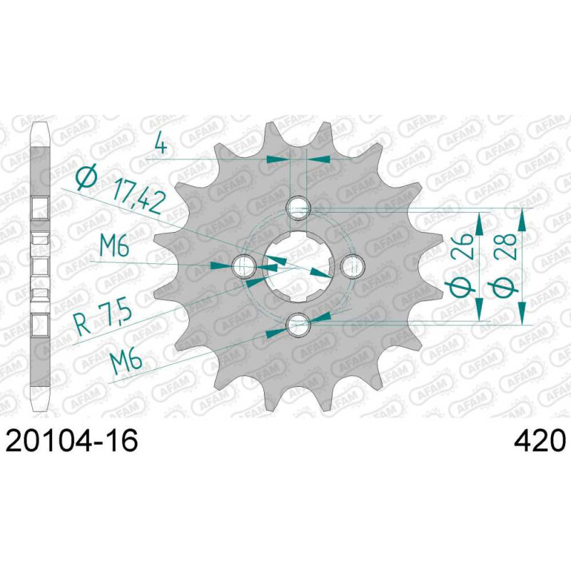 20104-16 звезда передняя (ведущая) стальная , 420, AFAM