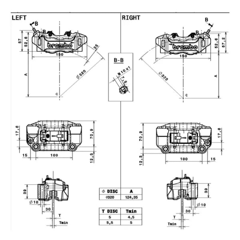 220B47330 К-кт торм. суппортов Brembo Racing GP4-RB 100мм Black (составной, фрезерованный 30/34мм)