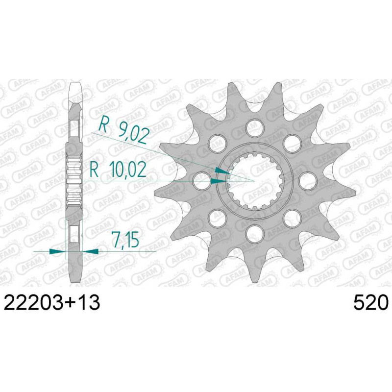 22203+13 звезда передняя (ведущая) стальная самоочищающаяся, 520, AFAM