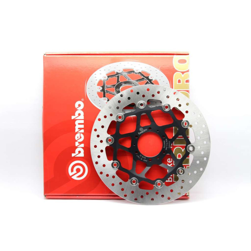 Плавающий тормозной диск серии Oro Floating Disc состоит из тормозного ротора из нержавеющей стали и фрезерованной ступицы из анодированного алюминиевого сплава, соединенных между собой 10-ю подпружиненными крепежными втулками.