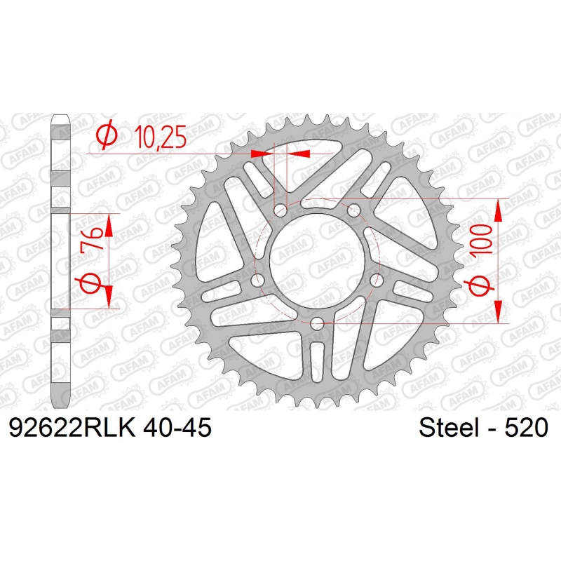 92622RLK-44 звезда задняя (ведомая) стальная, облегченная, 520, AFAM