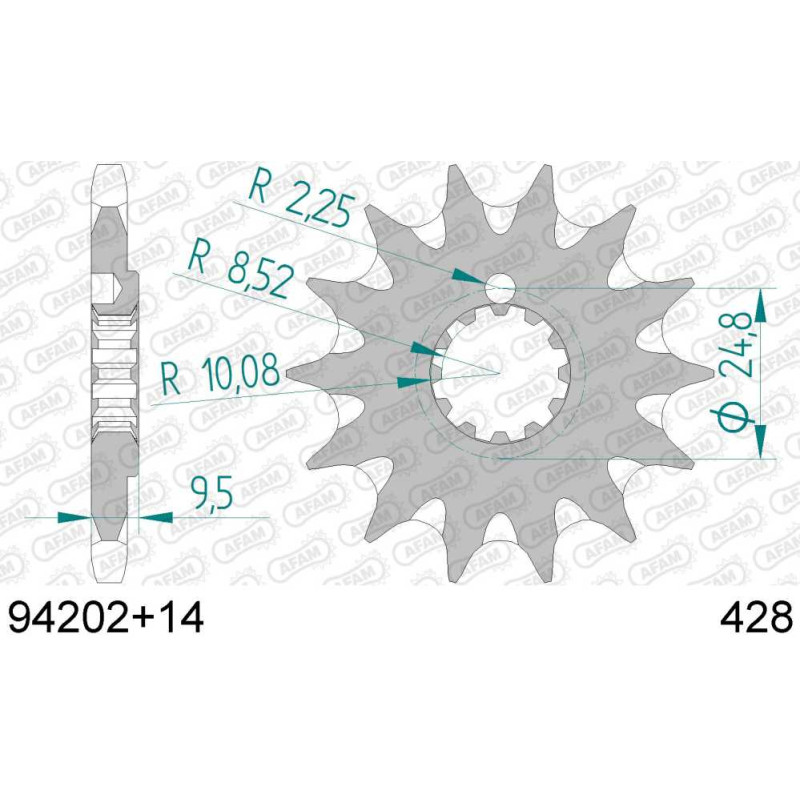94202+14 звезда передняя (ведущая) стальная самоочищающаяся, 428, AFAM (JTF1907.14)