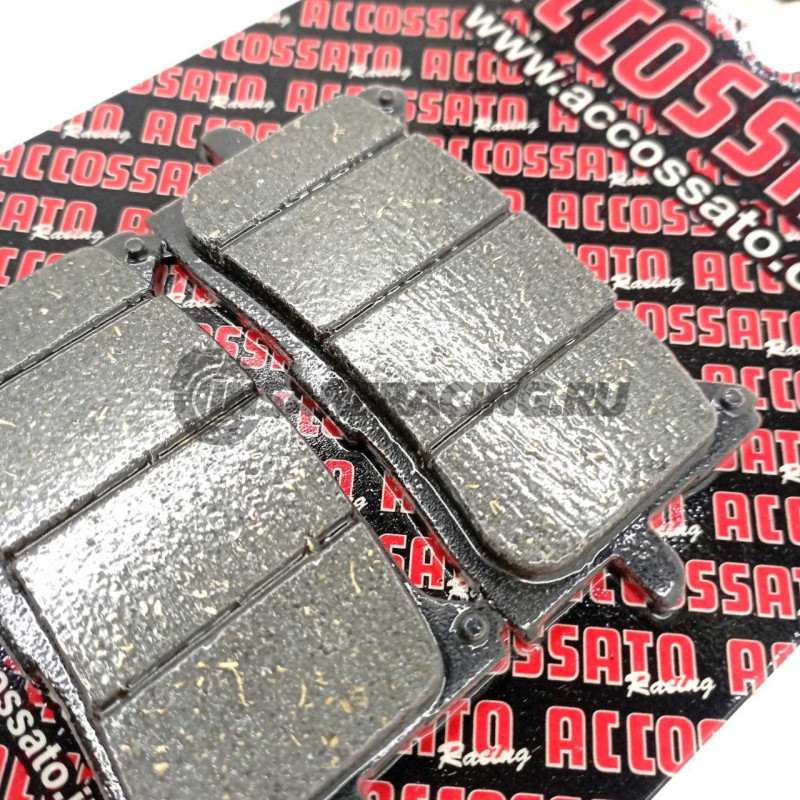 Тормозные колодки Accossato из органического материала OR гарантируют долгий срок службы и малый износ тормозных дисков, при этом они обладают высокими характеристиками торможения. Рекомендуются для спокойной езды по городу.