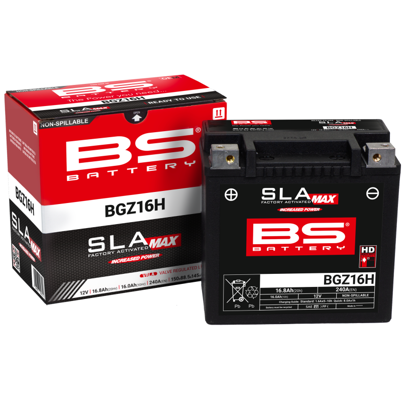 Аккумулятор BGZ16H является частью новой серии BGZ в линейке SLA Max. Эта батарея 12 В, 16,8 Ач, имеющая более высокие пластины и встроенные клеммы с медными гайками, обеспечивает максимальную производительность (CCA и емкость) для техники с большими двигателями, предъявляющих высокие требования и оснащенных большим количеством электронного оборудования; даже в самых экстремальных условиях.