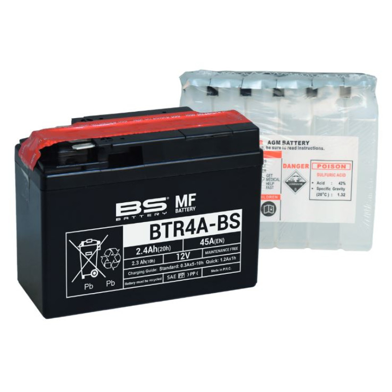 BTR4A-BS Аккумулятор BS AGM, 12В, 2,3Ач, 45А 113x48x85, обратная ( -/+ ) (YTR4A-BS)