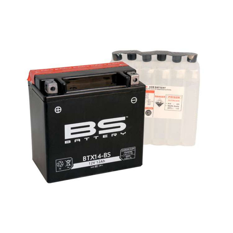 BTX14-BS Аккумулятор BS AGM, 12В, 12 Ач 150x87x145, прямая ( +/- ), (YTX14-BS)