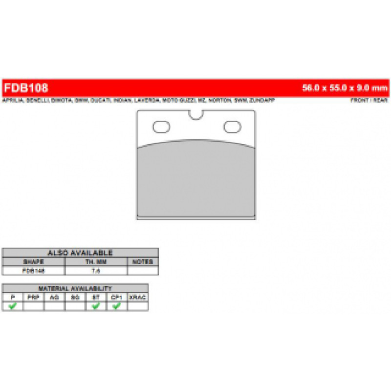 FDB108ST Тормозные колодки дисковые MOTO, блистер 2 шт