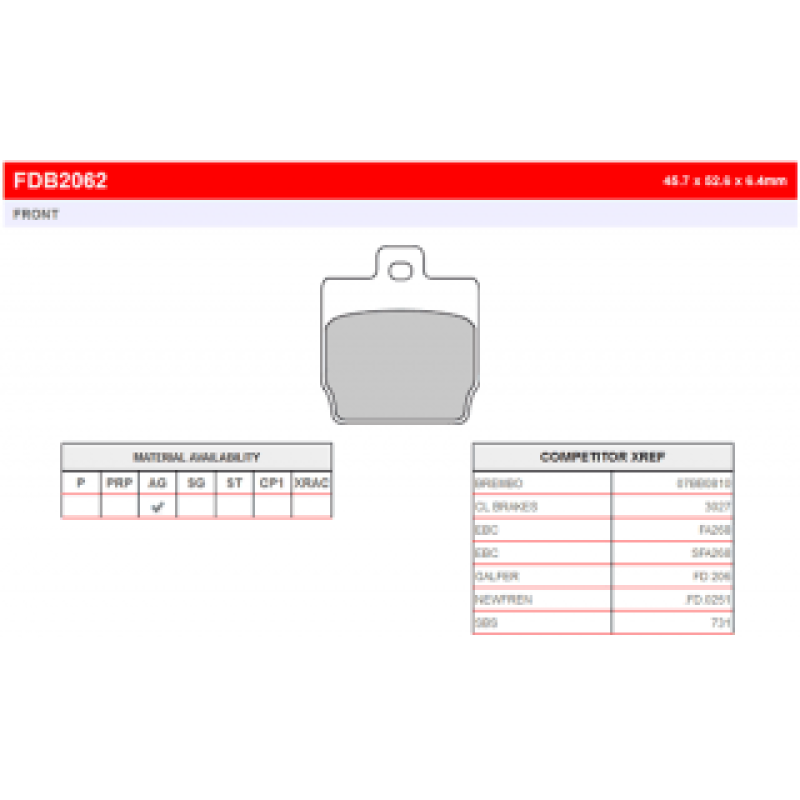 FDB2062EF Тормозные колодки дисковые MOTO, блистер 2 шт FDB2062AG