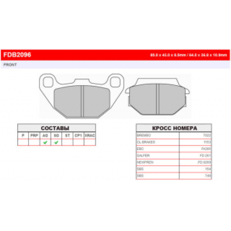 FDB2096EF Тормозные колодки дисковые MOTO, блистер 2 шт