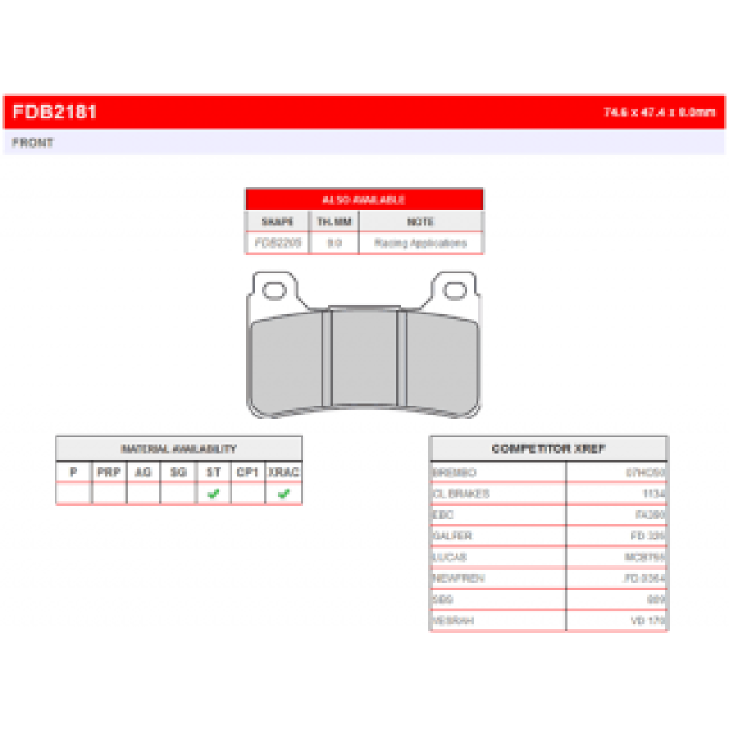 FDB2181XRAC Тормозные колодки дисковые MOTO, блистер 2 шт