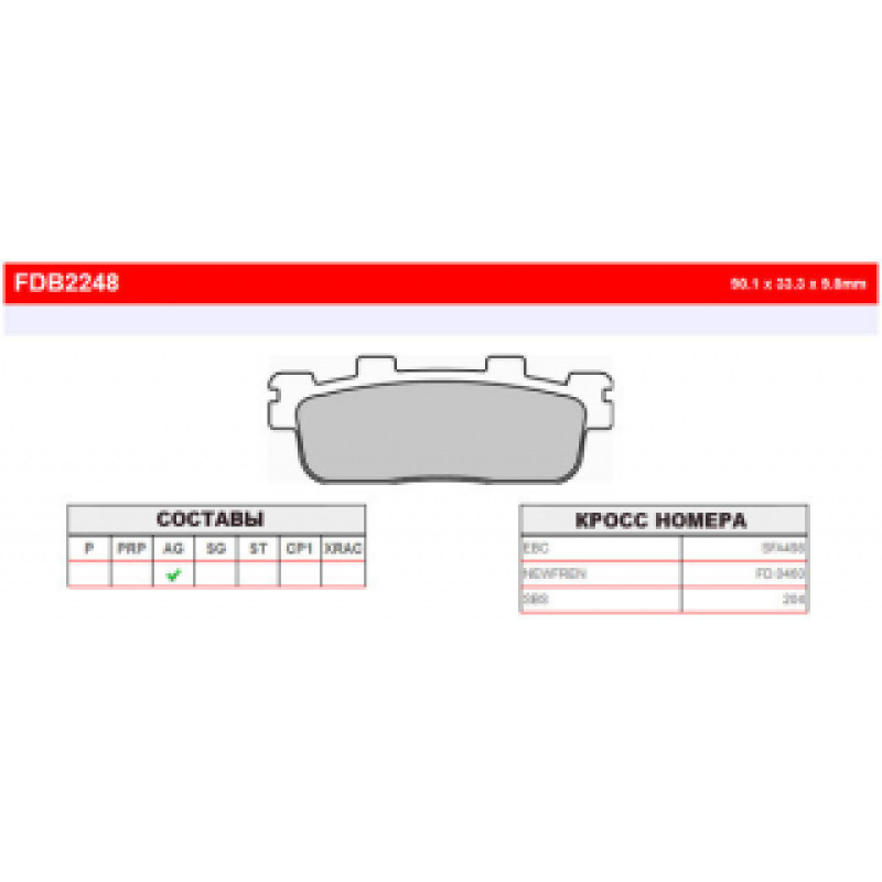 FDB2248EF Тормозные колодки дисковые MOTO, блистер 2 шт