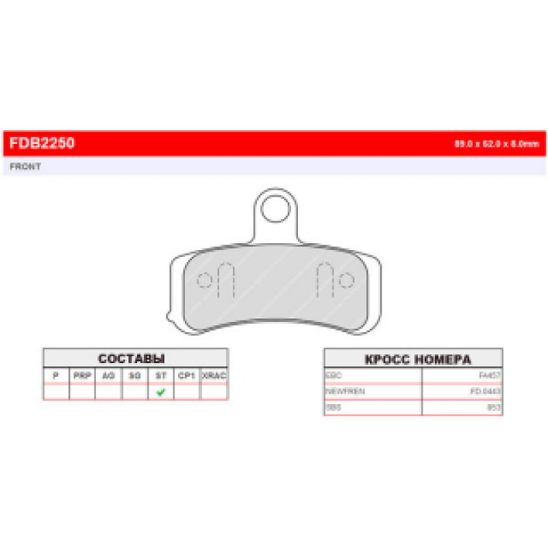 FDB2250ST Тормозные колодки дисковые MOTO, блистер 2 шт