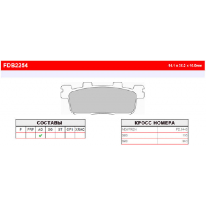 FDB2254EF Тормозные колодки дисковые MOTO, блистер 2 шт FDB2254AG