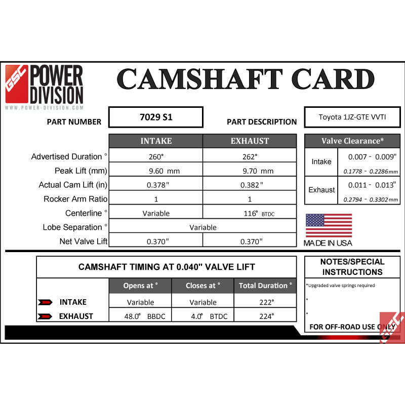 GSC7029S1 Распредвалы S1 POWER DIVISION GSC 1JZ GTE VVTI