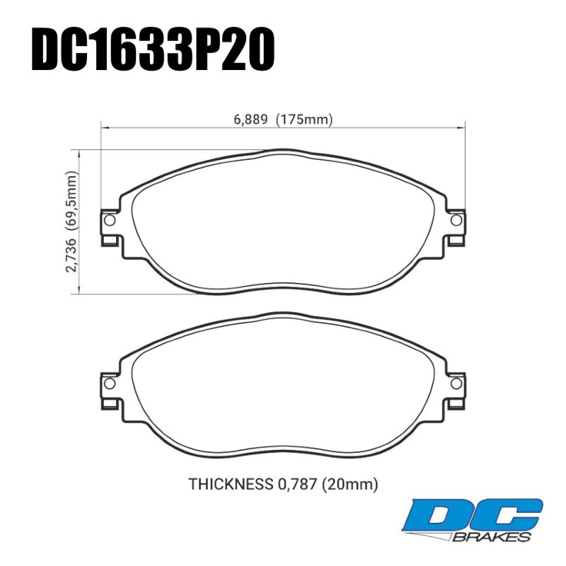 - Колодки тормозные DC1633P20 DC Brakes Street STR.S+, перед VW GOLF VII; Passat 362; AUDI A3 8V1