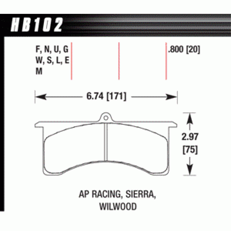 Колодки тормозные HB102L.800 HAWK MT-4 AP Racing 6, Sierra/JFZ, Wilwood 20 mm