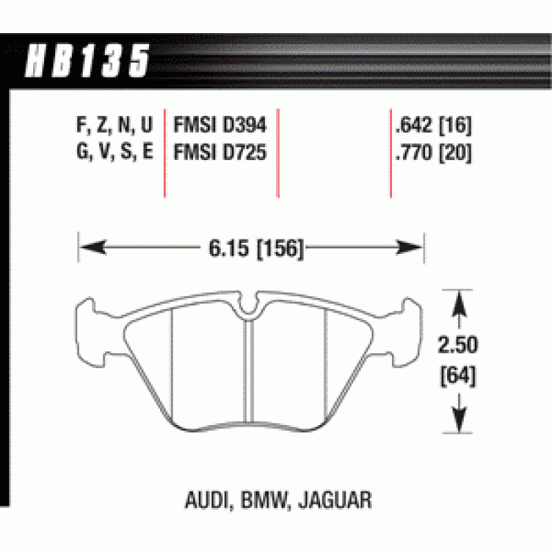 HB135 D394 / D725 FCP779 07.8300.10 / 07.8301.50 CL BRAKES 4033 / MINTEX MDB1393 / PAGID 1295 / PFC 0394.XX / WVA 20 968 20,30; D394