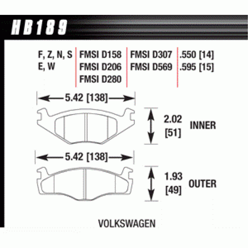 Колодки тормозные HB189N.550 HAWK HP Plus