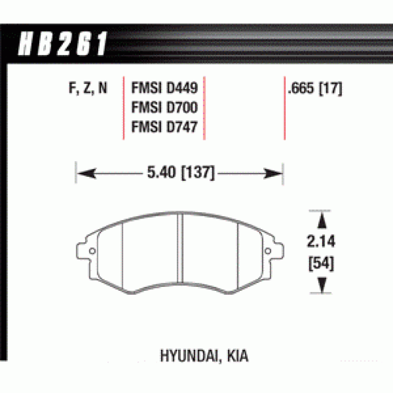 Колодки тормозные HB261F.665 HAWK HPS передние HYUNDAI / NISSAN
