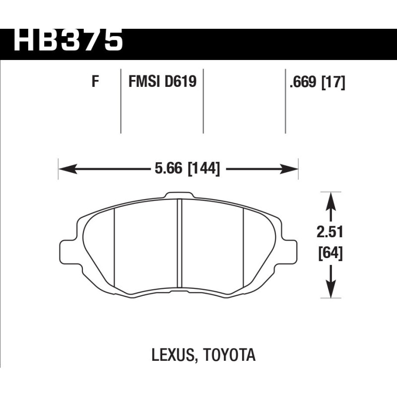 Колодки тормозные HB375F.669 HAWK HPS TOYOTA/LEXUS MARK2; CHASER; ALTEZZA; SOARER; GS300; IS300; SUPRA
