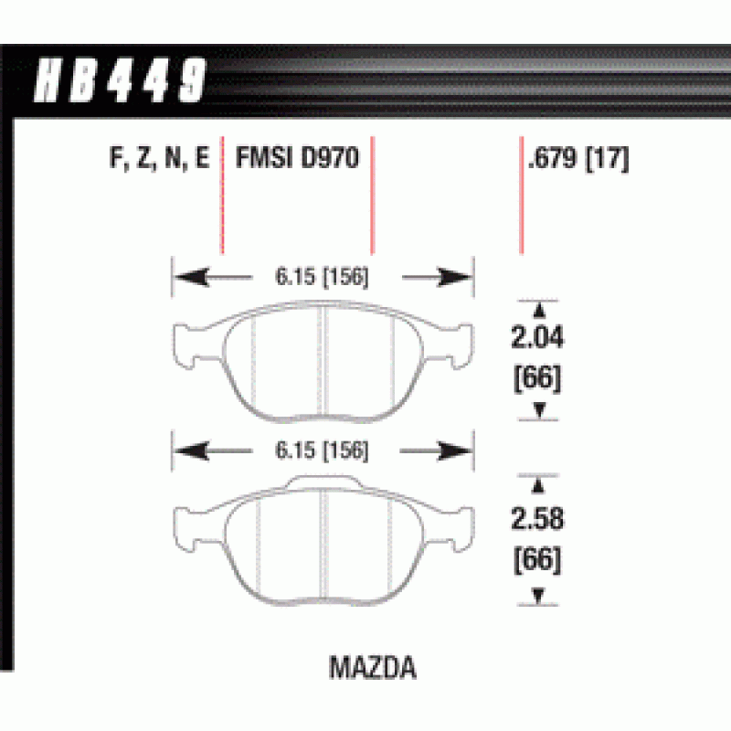 Колодки тормозные HB449E.679 HAWK Blue 9012 Mazda 17 mm