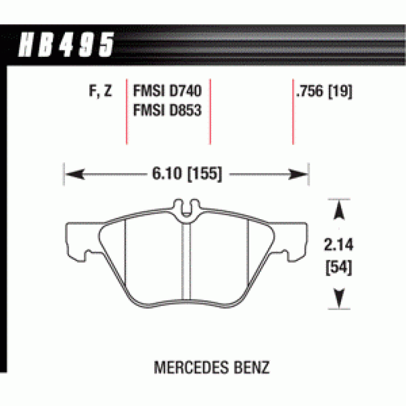 Колодки тормозные HB495F.756 HAWK HPS передние MERCEDES CLK320 (C208), W210