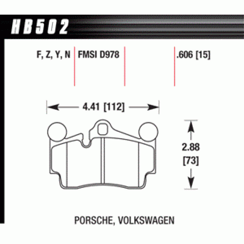 Колодки тормозные HB502N.606 HAWK HP+ задние PORSCHE Cayenne (955) / Audi Q7 / VW Touareg