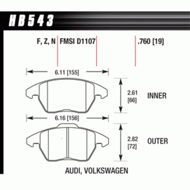 Колодки тормозные HB543R.760 HAWK Street Race передние AUDI A3 / VW Golf 5,6 , Passat CC, B6, B7