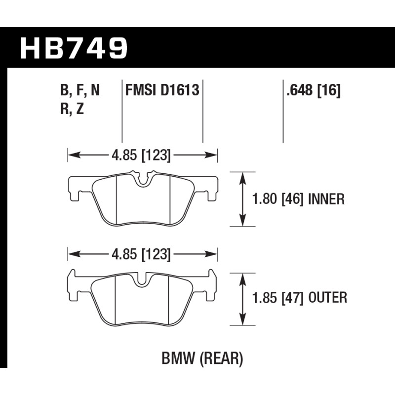 Колодки тормозные HB749B.648 задние BMW F20 F22 F30 F31 F32 F33 F34 F36