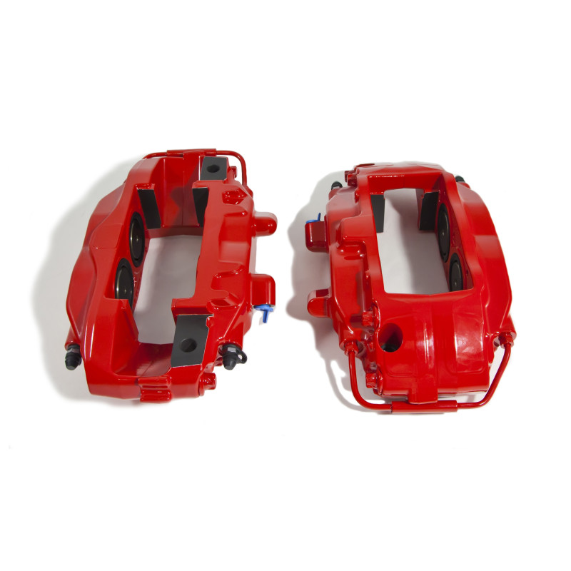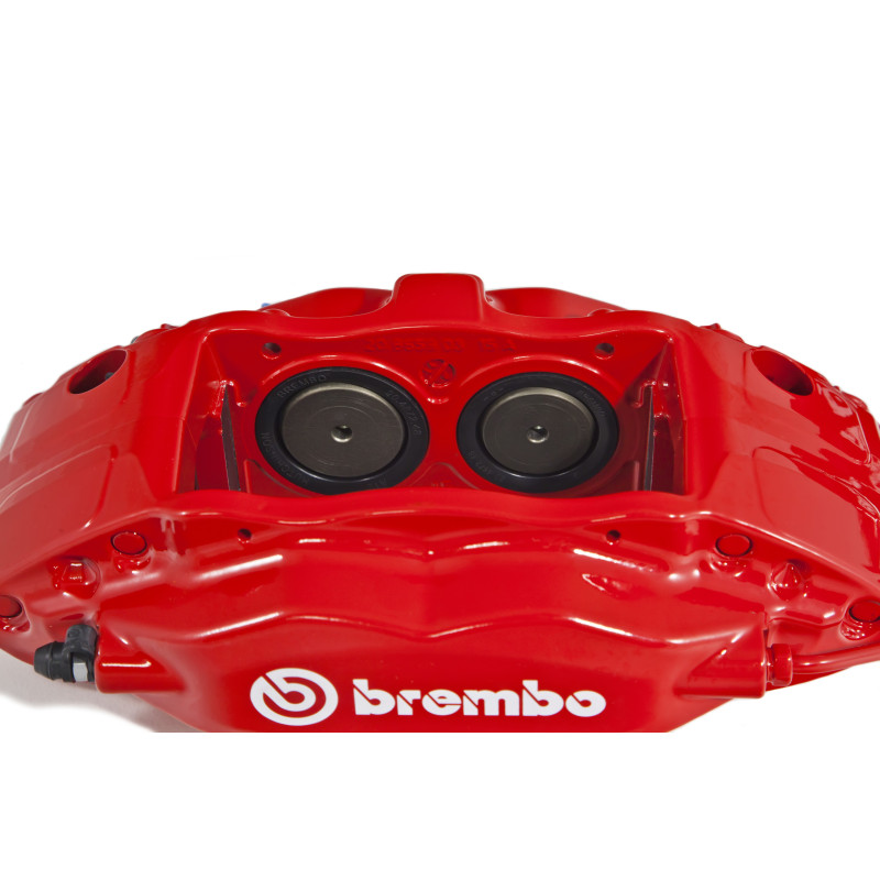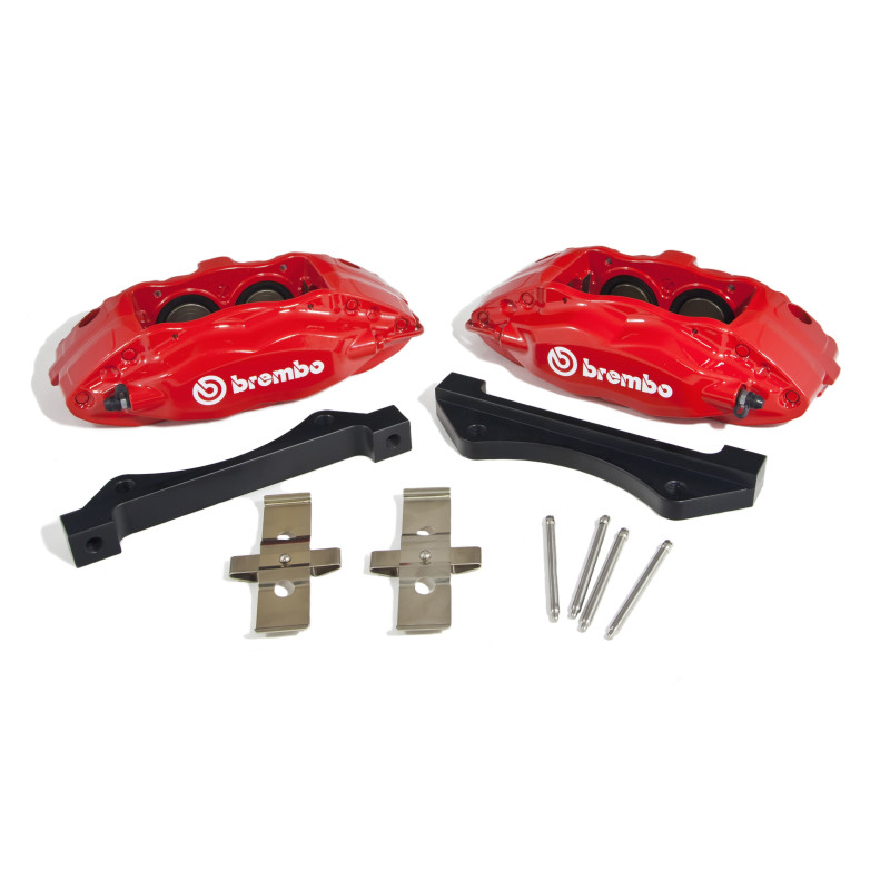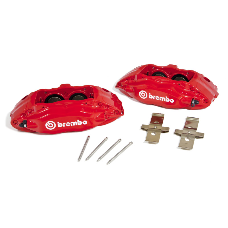 Комплект суппортов 2 шт. Brembo 4 поршня + адаптеры + армированные торм. шланги (2 шт) КРАСНЫЕ