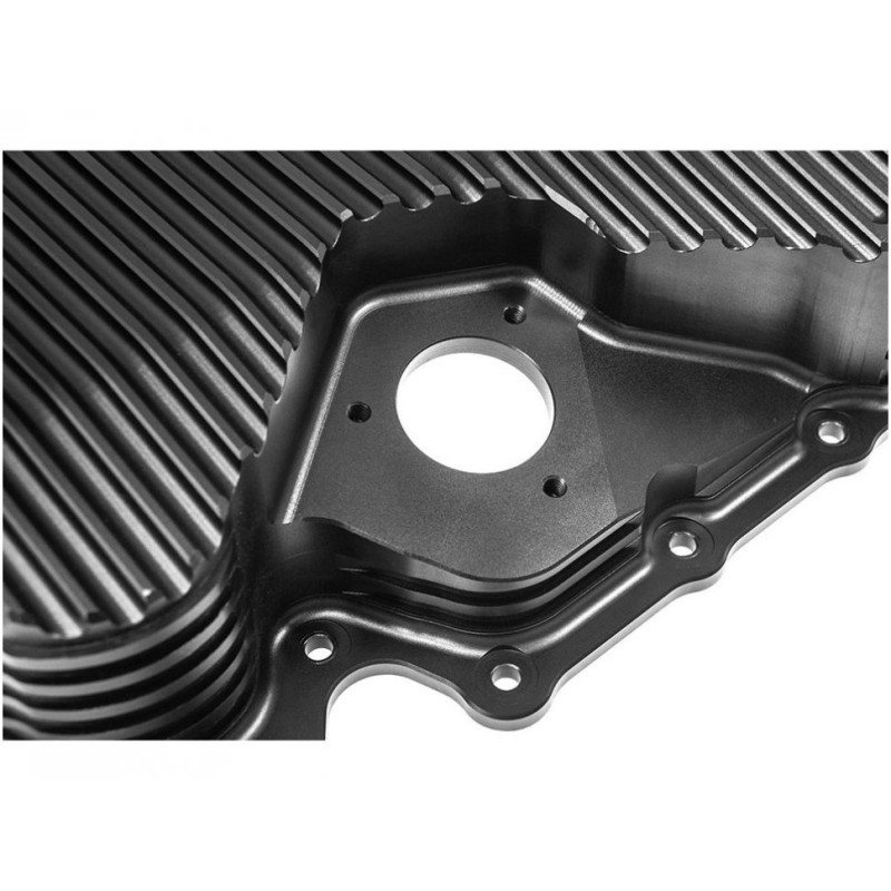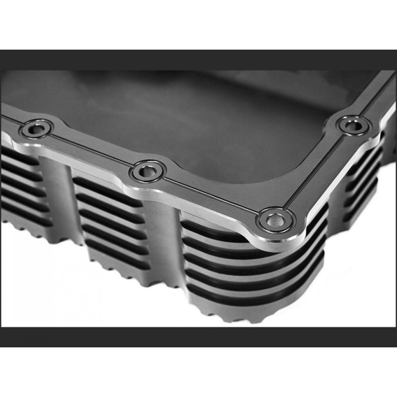 Выточенный на ЧПУ из цельной заготовки алюминиевого сплава 6061-Т6. Ребра охлаждения. Вмещает дополнительно 1 литр масла. Установка не требует никаких дополнительных переделок.