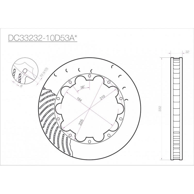 Ротор составного тормозного диска DC Brakes DC33232-10D53AR, 332*32mm, D крепеж, прав. (Brembo, JBT)