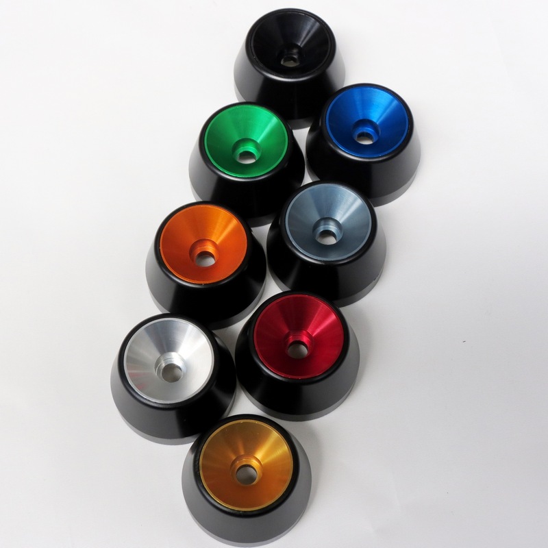 Защита передней оси мотоцикла. Комплект состоит из двух буферов из пластика с пресованной алюминиевой втуллкой.