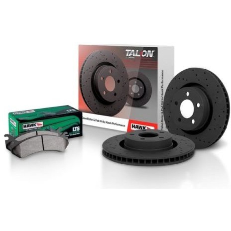Комплект задних высокоуглеродистых тормозных дисков Hawk Talon и тормозных колодок Hawk Perfomance состав LTS специально разработанный для тяжелых внедорожников.
